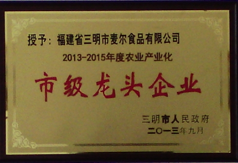 2013年10月15日,我司榮獲2013—2015年度農(nóng)業(yè)產(chǎn)業(yè)化“市級龍頭企業(yè)”稱號,這是我司連續(xù)第3次榮獲此項(xiàng)殊榮。
